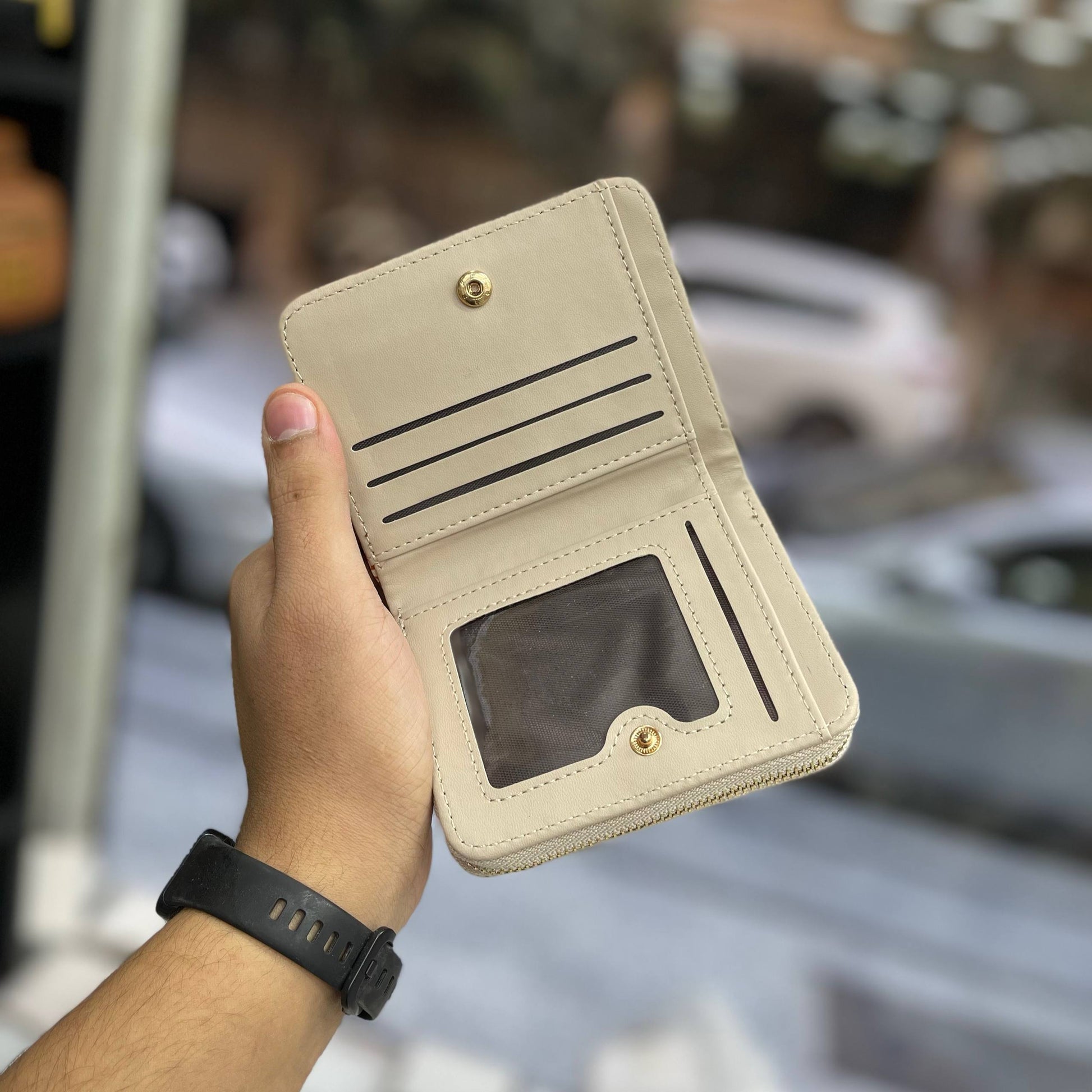 Stay effortlessly stylish with this elegant beige leather wallet. Crafted from high-quality textured leather, it features a sleek flap design with a chic gold ring accent and secure snap closure. The compact yet spacious interior provides multiple compartments for cash, cards, and coins, keeping your essentials neatly organized. Perfect for everyday use or as a classy accessory to complement any outfit.